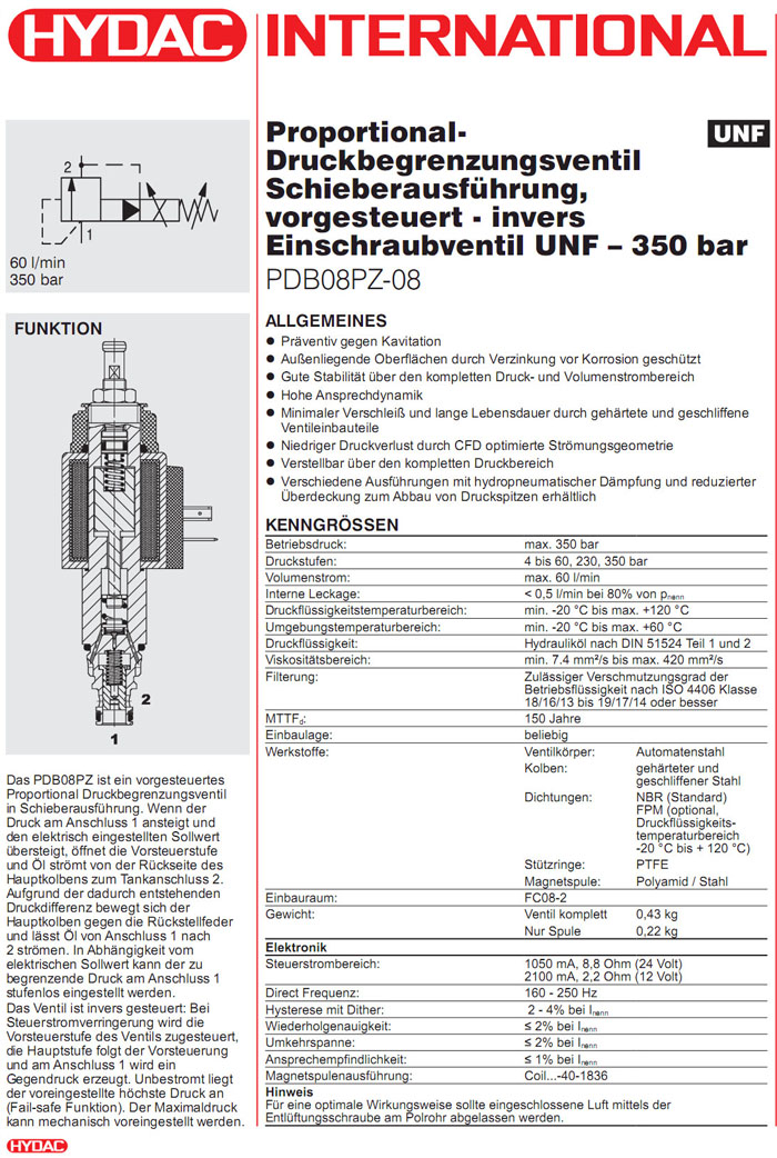 PDB08PZ-08-C-N-087V087-12PG-2.2,PDB08PZ-08-C-N-087V087-24PG-8.8,HYDAC比例溢流閥