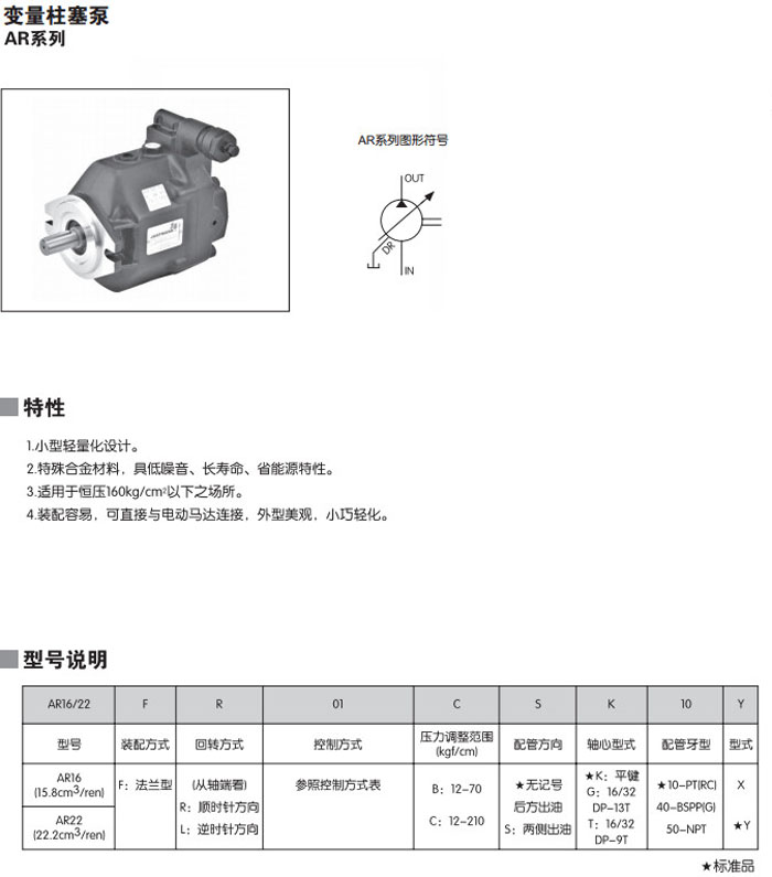 AR16,AR22,AR16FR01BSK10X,AR22FR01BSK10X,AR16FL01CSK10X,AR22FLHLCG10X,雙聯(lián)變量柱塞泵