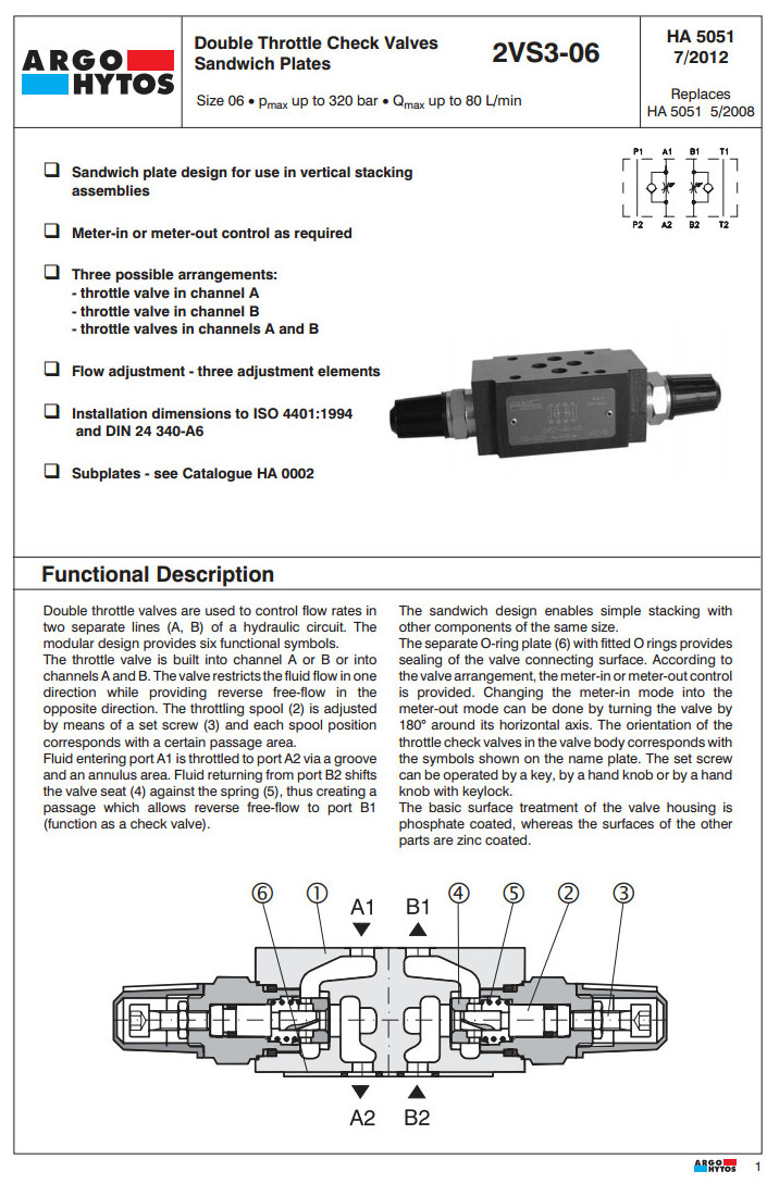 2VS3-06A,2VS3-06B,2VS3-06C,ARGO雙單向節(jié)流閥