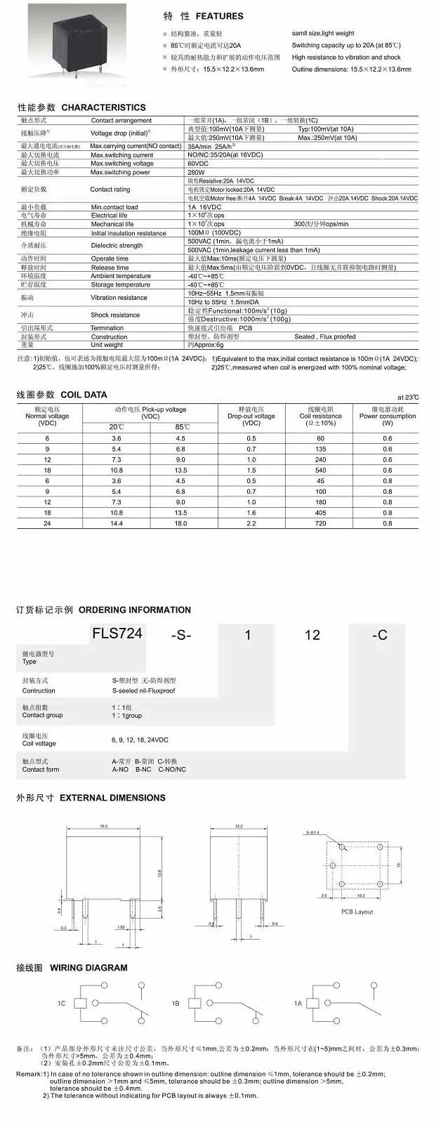 FLS820-15,汽車繼電器