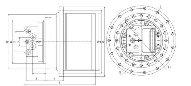 本產(chǎn)品為馬達(dá)與減速機(jī)一體的行走裝置。由集成于減速機(jī)內(nèi)部的雙排量軸向柱塞馬達(dá)、行走減速器組成。馬達(dá)內(nèi)置安全閥、防反轉(zhuǎn)閥、停車制動(dòng)裝置及高低二檔轉(zhuǎn)換裝置,它的特點(diǎn)是:傳動(dòng)比范圍大、結(jié)構(gòu)緊湊、工作效率高、可靠性強(qiáng)、體積小、運(yùn)動(dòng)平穩(wěn)、噪音低等,同時(shí)具有多級(jí)安全保護(hù)、使用壽命長(zhǎng)等優(yōu)點(diǎn)。適用于液壓履帶驅(qū)動(dòng)行走裝置。