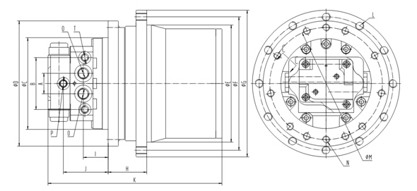 本產(chǎn)品為馬達(dá)與減速機(jī)一體的行走裝置。由集成于減速機(jī)內(nèi)部的雙排量軸向柱塞馬達(dá)、行走減速器組成。馬達(dá)內(nèi)置安全閥、防反轉(zhuǎn)閥、停車(chē)制動(dòng)裝置及高低二檔轉(zhuǎn)換裝置,它的特點(diǎn)是:傳動(dòng)比范圍大、結(jié)構(gòu)緊湊、工作效率高、可靠性強(qiáng)、體積小、運(yùn)動(dòng)平穩(wěn)、噪音低等,同時(shí)具有多級(jí)安全保護(hù)、使用壽命長(zhǎng)等優(yōu)點(diǎn)。適用于液壓履帶驅(qū)動(dòng)行走裝置。