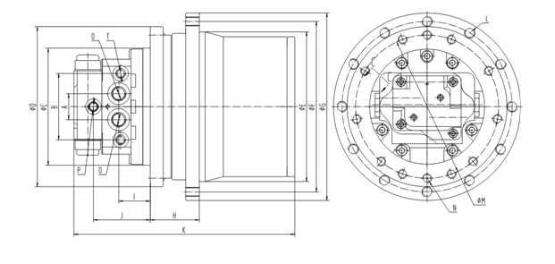 本產(chǎn)品為馬達(dá)與減速機一體的行走裝置。由集成于減速機內(nèi)部的雙排量軸向柱塞馬達(dá)、行走減速器組成。馬達(dá)內(nèi)置安全閥、防反轉(zhuǎn)閥、停車制動裝置及高低二檔轉(zhuǎn)換裝置,它的特點是:傳動比范圍大、結(jié)構(gòu)緊湊、工作效率高、可靠性強、體積小、運動平穩(wěn)、噪音低等,同時具有多級安全保護(hù)、使用壽命長等優(yōu)點。適用于液壓履帶驅(qū)動行走裝置。