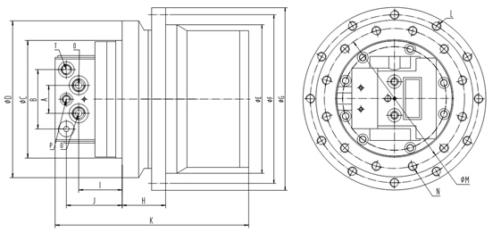 本產(chǎn)品為馬達與減速機一體的行走裝置。由集成于減速機內(nèi)部的雙排量軸向柱塞馬達、行走減速器組成。馬達內(nèi)置安全閥、防反轉閥、停車制動裝置及高低二檔轉換裝置,它的特點是:傳動比范圍大、結構緊湊、工作效率高、可靠性強、體積小、運動平穩(wěn)、噪音低等,同時具有多級安全保護、使用壽命長等優(yōu)點。適用于液壓履帶驅動行走裝置。