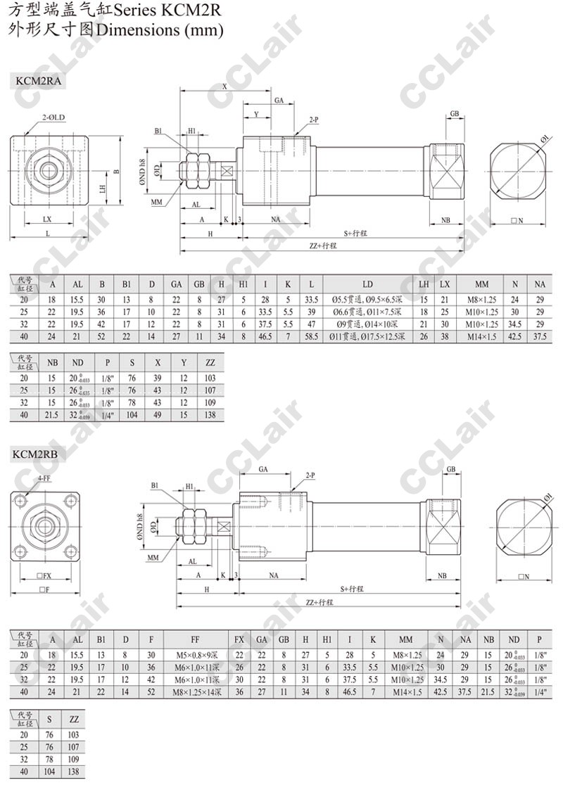 KCM2RA-20,KCM2RA-25,KCM2RA-32,KCM2RA-40,KCM2RA-40-300,KCM2RA-25-200,KCM2RA-32-25,ARK方形端蓋氣缸