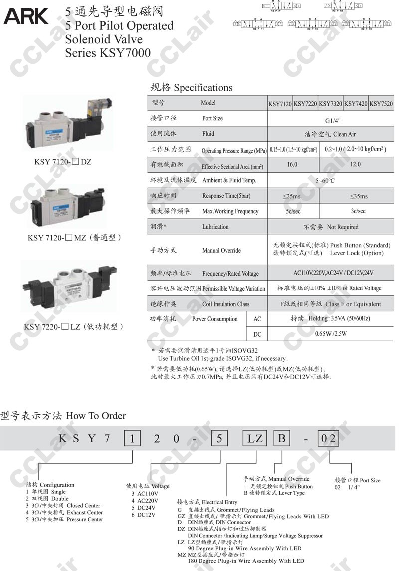KSY7120,KSY7220,KSY7320,KSY7420,KSY7520,KSY7520-6MZ-02,KSY7320-6LZ-02,ARK5通先導型電磁閥