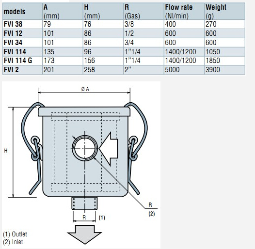 詳細(xì)信息 FVI38,FVI12,FVI34,FVI114,FVI114G,FVI2,COVAL真空過(guò)濾器 FVI系列真空過(guò)濾器,有多種過(guò)濾芯可選擇,過(guò)濾芯可更換。 主要參數(shù)見(jiàn)下表: