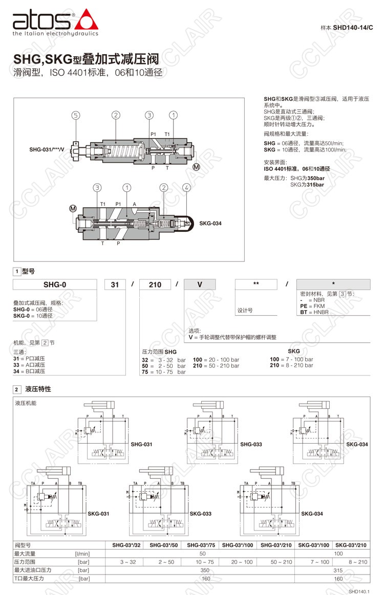 ATOS阿托斯,疊加式減壓閥SHG-031/32/V,SHG-031/50/V,SHG-031/75/V,SHG-031/100/V,SHG-031/210/V,SHG-033/32/V,SHG-033/50/V,SHG-033/75/V,SHG-033/100/V,SHG-033/210/V,SHG-034/32/V,SHG-034/50/V,SHG-034/75/V,SHG-034/100/V,SHG-034/210/V