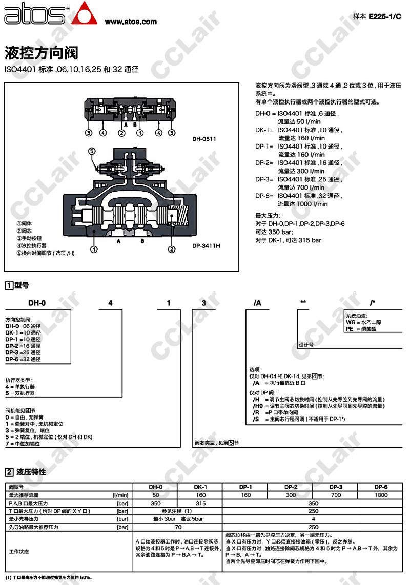 DP-14,DP-15,DP-24,DP-25,DP-44,DP-45,DP-64,DP-65,DP-1411/2P/H,DP-1411/2P/R,DP-3410/H,阿托斯ATOS液控方向閥