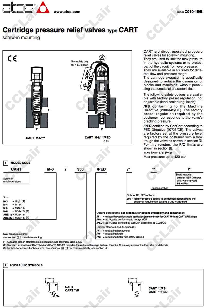 CART M-3,CART M-4,CART M-5,CART M-6,CART ARE-15,CART ARE-20,CART M-3/420/PED,阿托斯ATOS直動(dòng)式溢流閥