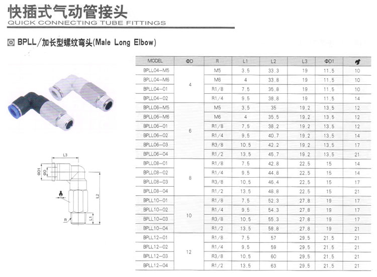 BPLL04-M5,BPLL06-M5,BPLL08-01,BPLL10-01,BPLL12-01,BPLL04-M6,BPLL06-M6,快插式氣動(dòng)管接頭