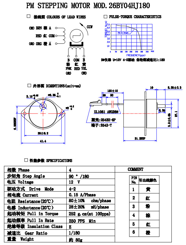 25BY48HJ21,25BY48HJ49,26BY04HJ180,精密減速步進(jìn)電機(jī)