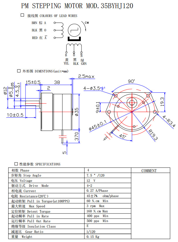 35BY48HJ4.5,35BY48HJ6.3,35BY48HJ11B,35BY48HJ17.5,精密減速步進電機