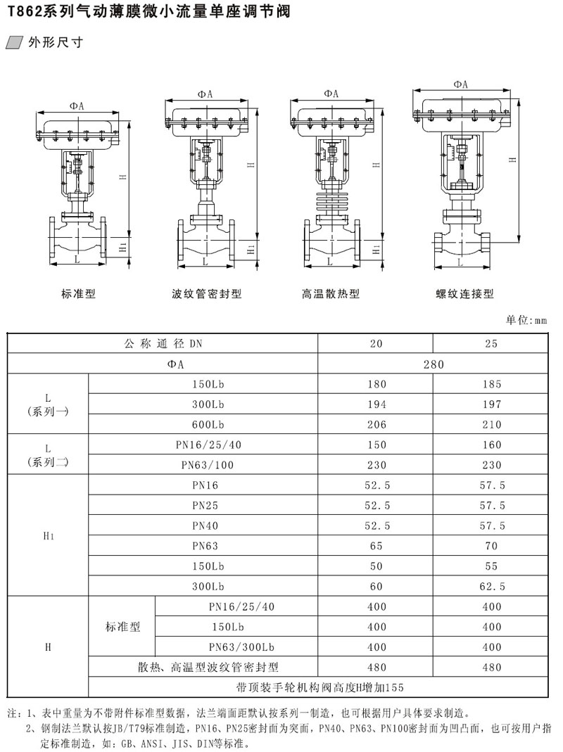 T862-16B,T862-25B,T862-40B,T862-63B,T862-100B-DN20,氣動薄膜微小流量單座調(diào)節(jié)閥