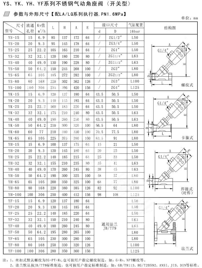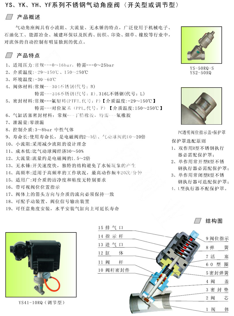 YS-15,YS-20,YK-25,YK-32,YH-40,YH-50,YF-65,YF-80,不銹鋼Y型角座氣動(dòng)閥