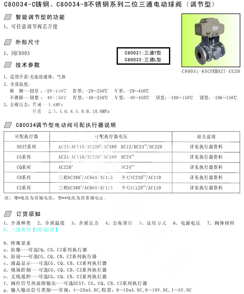C80034-15,C80034-20,C80034-25,C80034-32,C80034-40,C80034-50,不銹鋼電動三通調節(jié)球閥