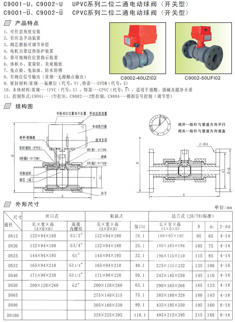 C9001-15,C9001-20,C9001-25,C9001-32,C9002-40,C9002-50,電動(dòng)球閥