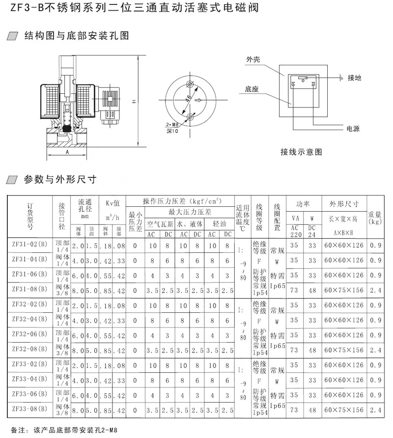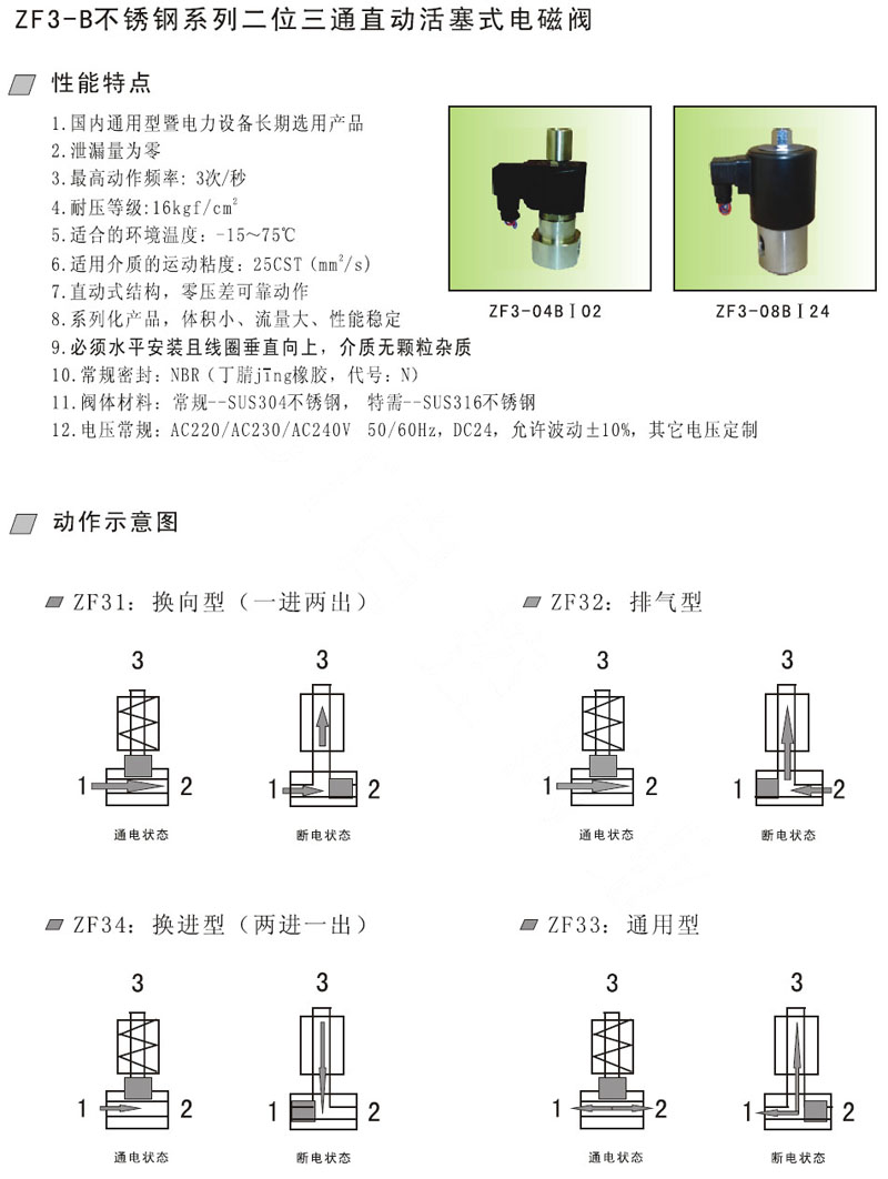 ZF31-02,ZF31-04,ZF32-02,ZF32-04,ZF33-06,ZF33-08,直動活塞式電磁閥