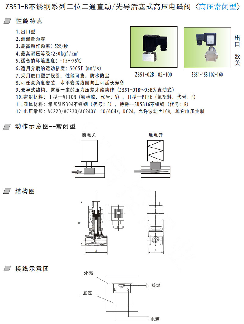 Z531-01B-160,Z531-1.5B-100,Z531-02B-80,Z531-03B-40,Z531-10B-100,高壓活塞式電磁閥