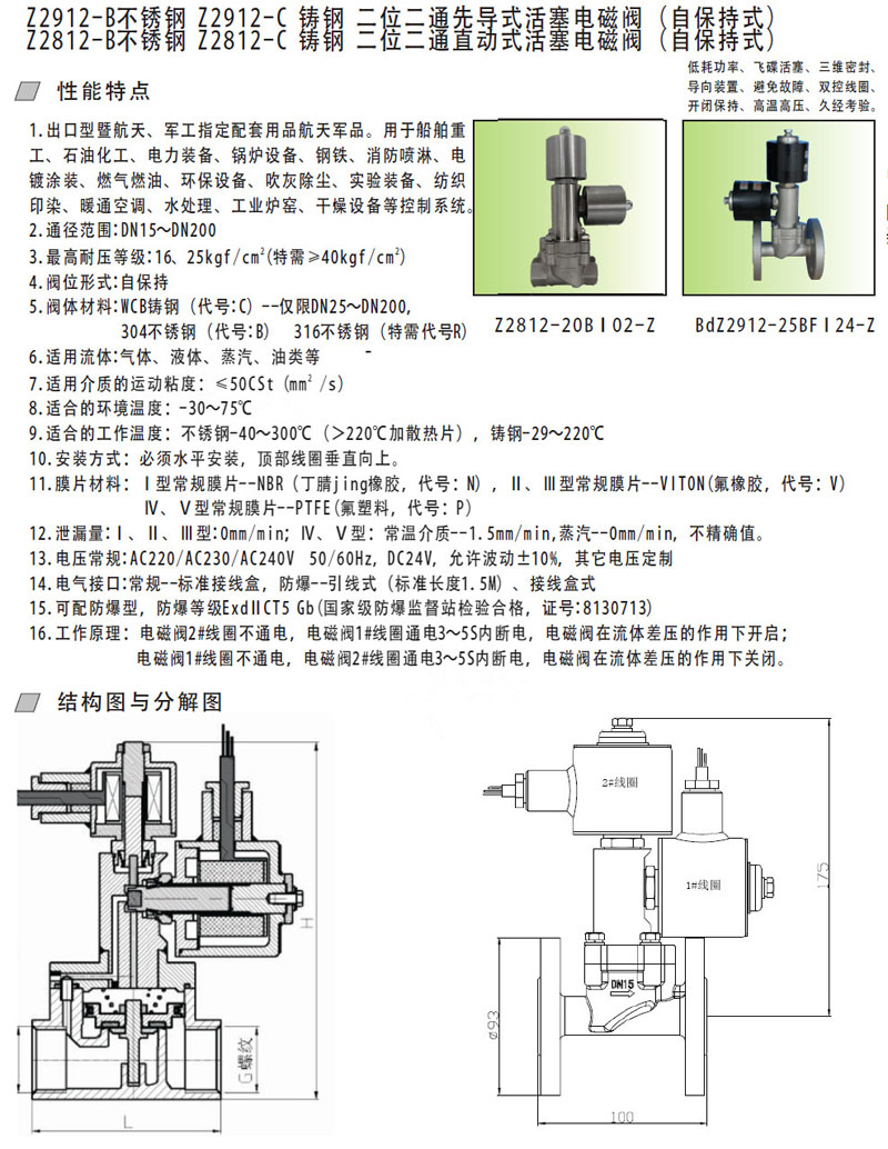 Z2912-15,Z2912-20B,Z2912-32BC,Z2912-40BF,Z2912-50BFC,先導(dǎo)活塞式電磁閥