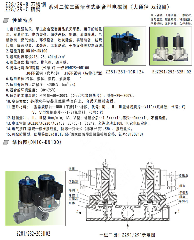 詳細信息 Z281/281-B,Z282/282-B,Z291/291-B,Z281/292-B,Z292/292-B,二位三通電磁閥