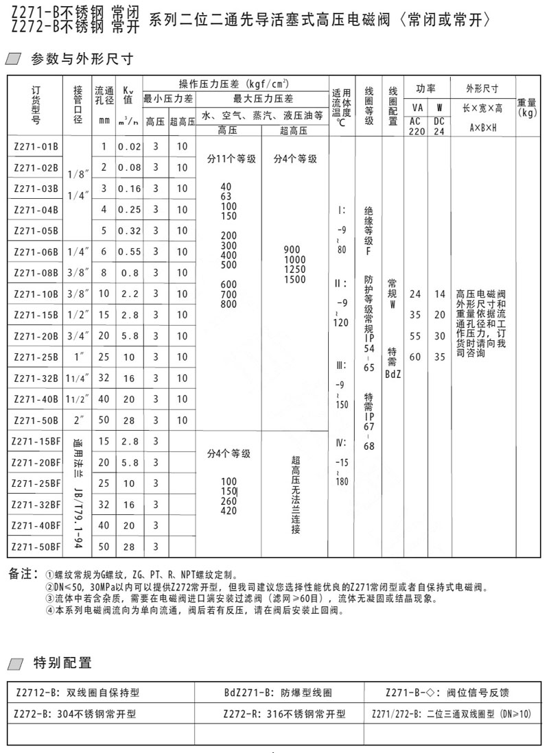 Z271-01B,Z271-02B,Z271-03B,Z271-04B,Z271-15BF,Z271-20BF,不銹鋼先導(dǎo)活塞式高壓電磁閥