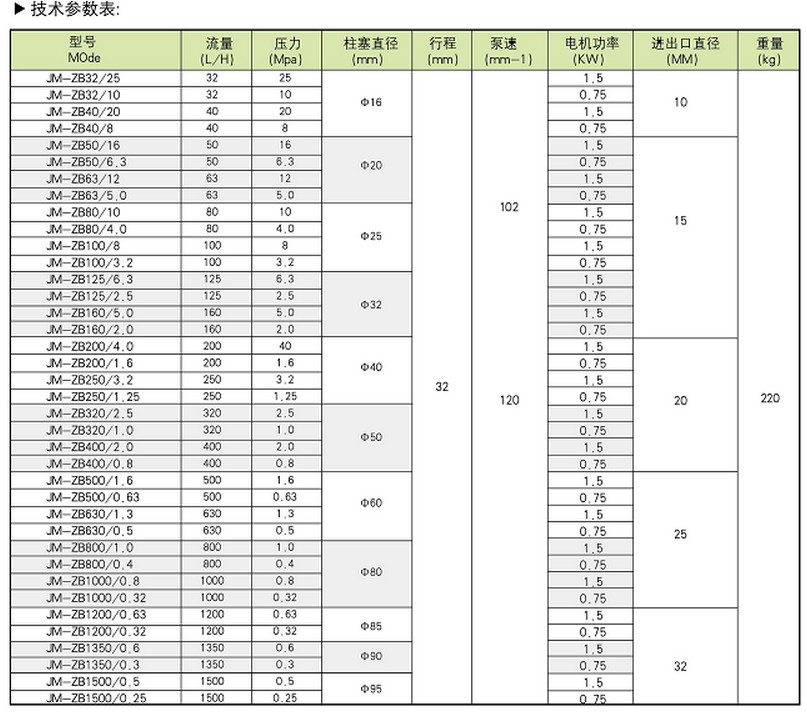 JM-ZB-250/1.25,JM-ZB-320/2.5,JM-ZB-320/1.0,JM-ZB-400/2.0,JM-ZB-400/0.8,JM-ZB-500/1.6,