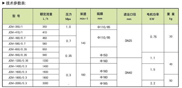 詳細(xì)信息 JCM-350/1,JCM-410/1,JCM-460/0.7,JCM-580/0.7,JCM-650/0.35,機(jī)械隔膜式計(jì)量泵 JCM-940/0.35,JCM-1200/0.35,JCM-1400/0.3,JCM-1600/0.3,JCM-1800/0.3,JCM-2000/0.3,