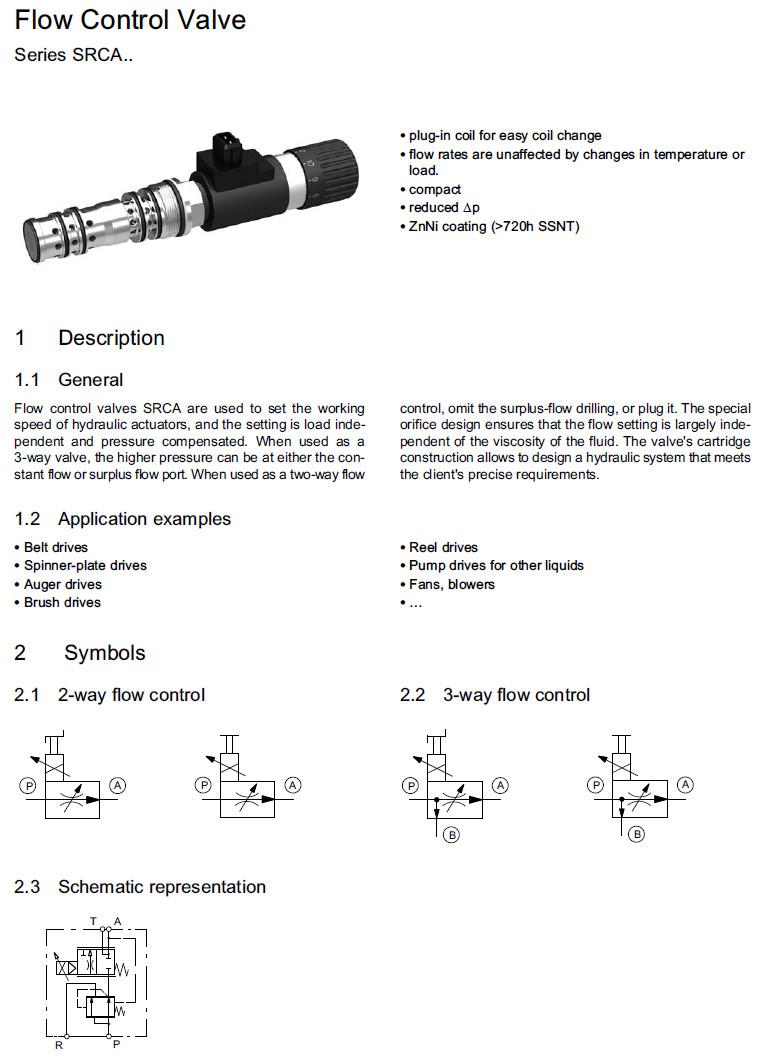 詳細(xì)信息 SRCA050S3-0G12,SRCA050S3-0T12,SRCA050T3-0G24,SRCA050T3-0J24,Bucher流量控制閥