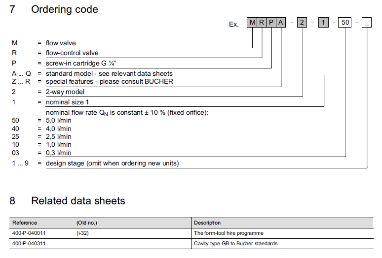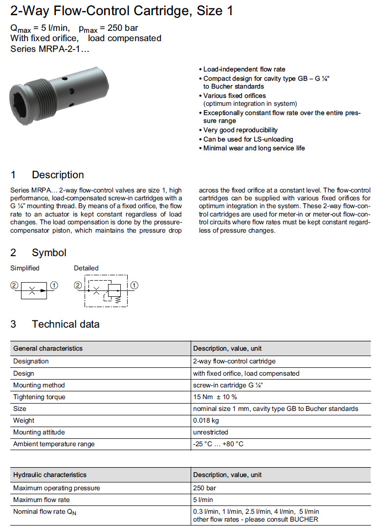 詳細信息 MRPA-2-1-50,MRPA-2-1-40,MRPA-2-1-25,MRPA-2-1-10,MRPA-2-1-03,Bucher流量閥