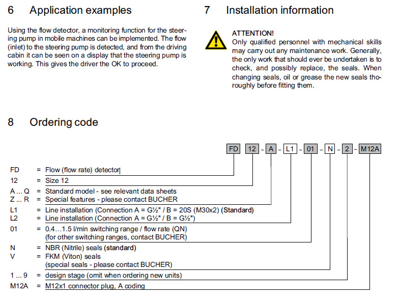 詳細(xì)信息 FD12-A-L1-01-N-2-M12A,FD12-A-L2-01-N-2-M12A,FD12-A-L1-01-V-2-M12A,Bucher流量檢測(cè)器