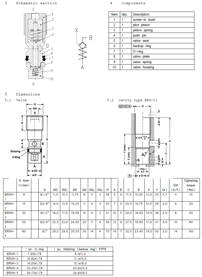 ERVH-G-1,ERVH-G-2,ERVH-G-3,ERVH-M-3,ERVH-M-4,ERVH-U-4,ERVH-U-5,Bucher先導(dǎo)式單向閥