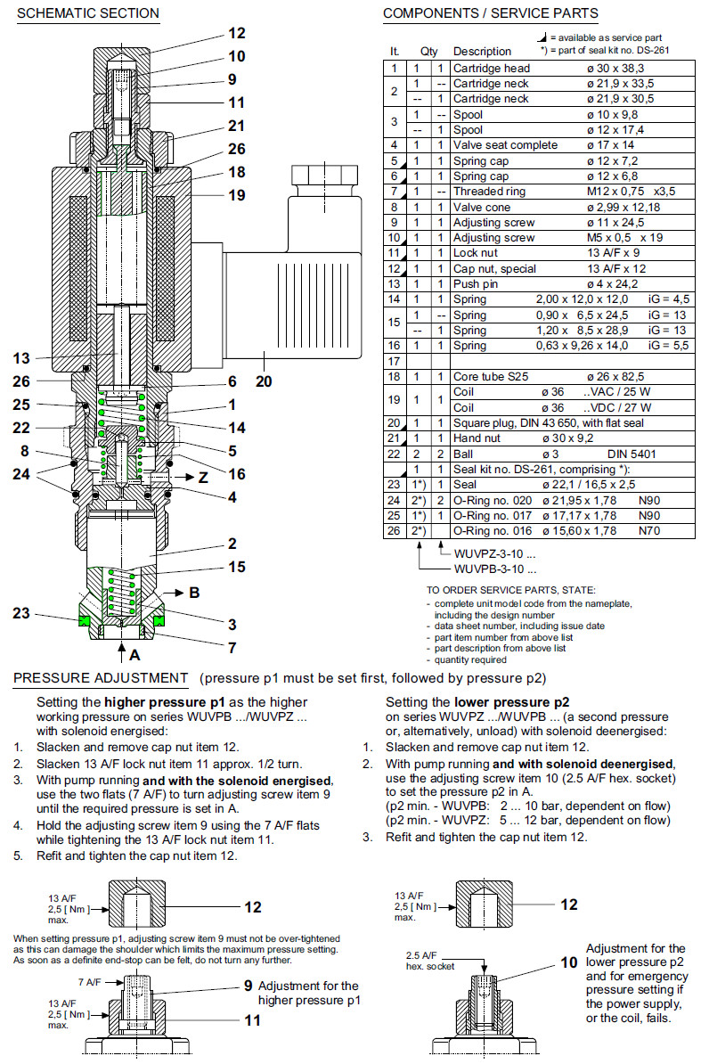 WUVPB-3MDO-10-1,WUVPB-3LDO-10-1,WUVPB-3NDO-10-1,Bucher電磁控制壓力安全閥