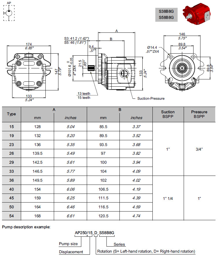 AP250/45-D-S38B2S,Bucher,AP250/50-D-S38B2S,AP250/54-D-S38B2S,