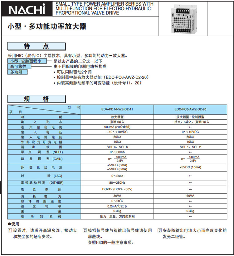 EDA-PD1-NWZ-D2-11,EDC-PC6-AWZ-D2-20,NACHI小型·多功能功率放大器