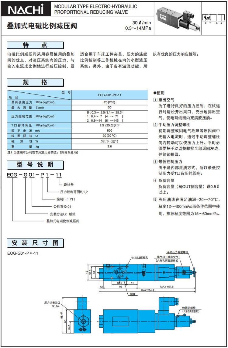 詳細(xì)信息 EOG-G01-PB-11,EOG-G01-P1-11,EOG-G01-P2-11,NACHI疊加式電磁比例減壓閥