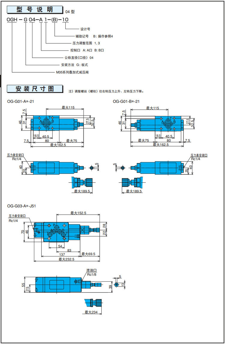OG-G01,OG-G03,OGH-G04,OG-G01-AC-21,OG-G03-AC-J51,OGH-G04-B3-10,NACHI疊加式減壓閥