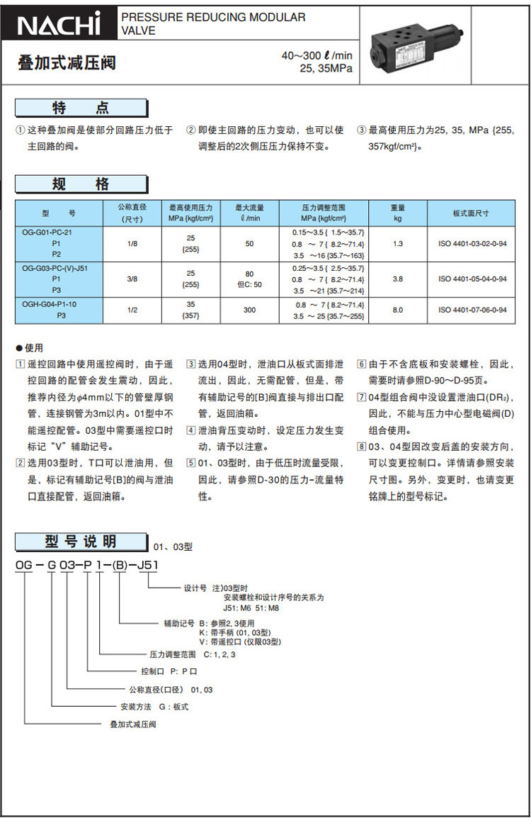 OG-G01,OG-G03,OG-G04,OG-G01-PC-21,OG-G03-P3-V-J51,OG-G04-P1-10,NACHI疊加式減壓閥