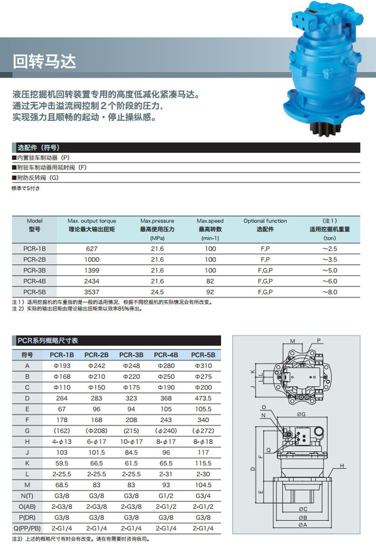 PCR-1B,PCR-2B,PCR-3B,PCR-4B,PCR-5B,NACHI回轉馬達