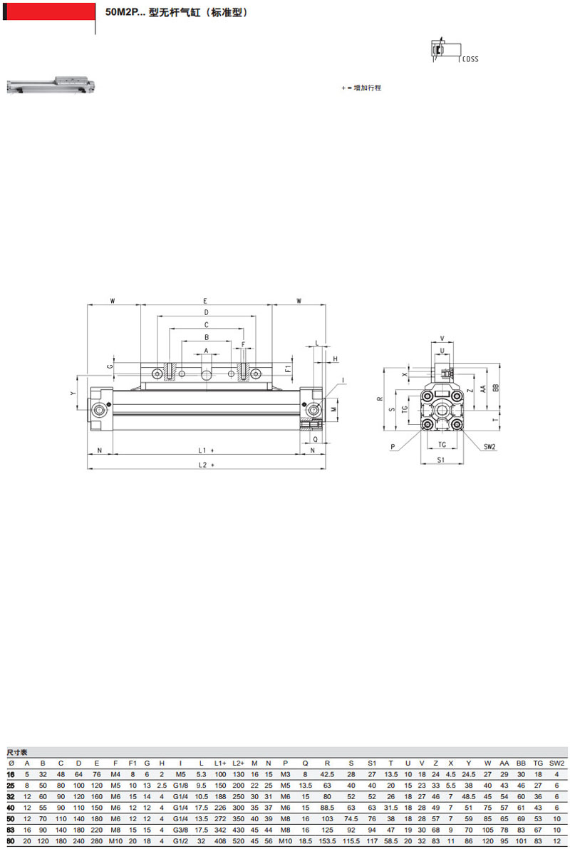 50M2P16A0500,50M2P25A0500,50M2U32A0500,50M2U40A0500,camozzi氣缸