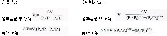 式中:P1=蓄能器充氣壓力 P2=系統(tǒng)的最低工作壓力 P3=系統(tǒng)的最高工作壓力