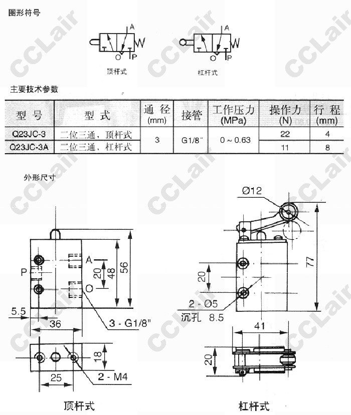 型號: Q23JC-3,Q23JC-3A,二位三通機控換向閥