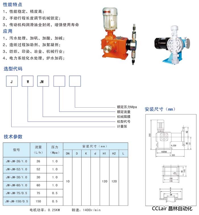 詳細(xì)信息 JW-JM-75/0.5,JW-JM-150/0.5,JW-JM-60/1.0,機(jī)械隔膜計(jì)量泵