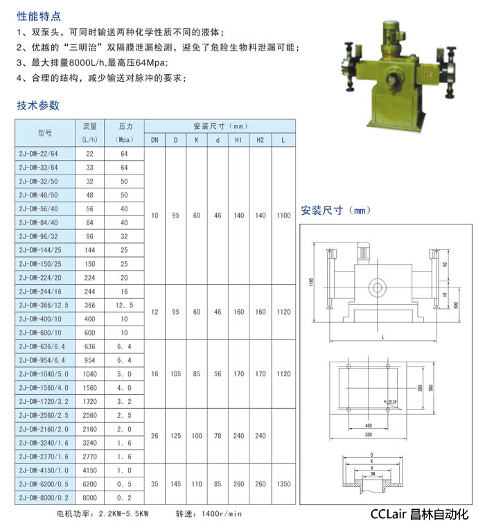詳細(xì)信息 2J-DM-1720/3.2,2J-DM-2560/2.5,2J-DM-2160/2.0,液壓隔膜計(jì)量泵
