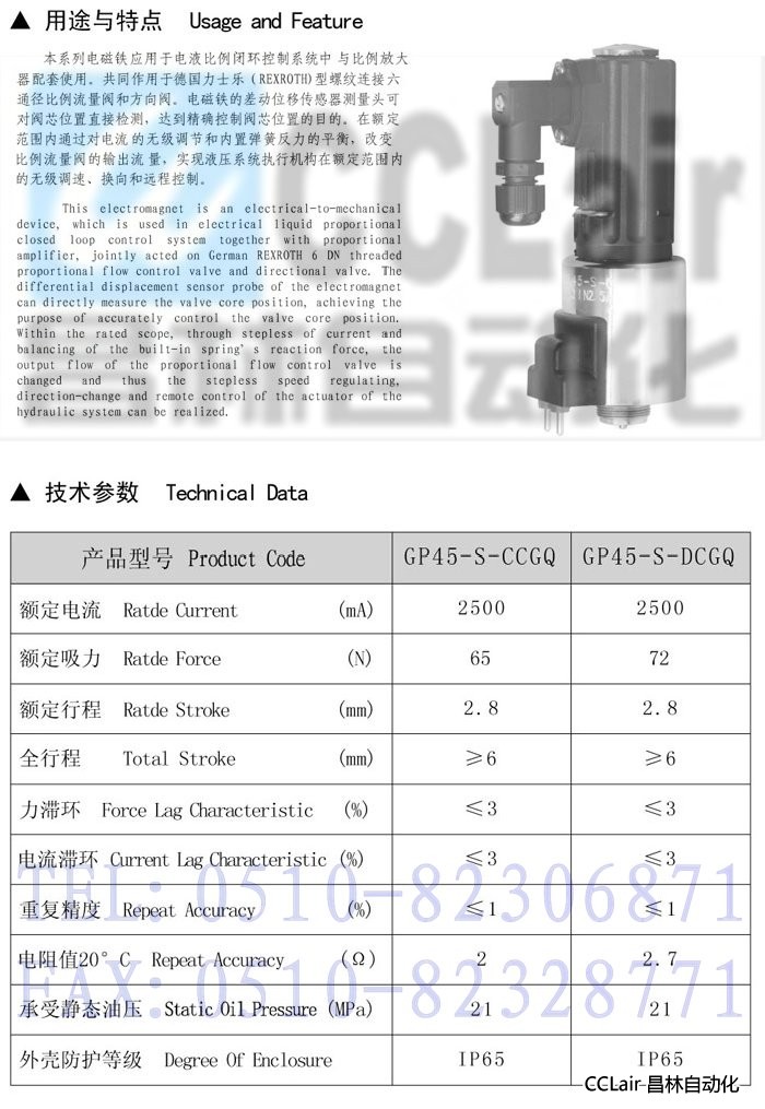 詳細(xì)信息 GP45-S-CCGQ,GP45-S-DCGQ,帶位移傳感器比例閥用電磁鐵