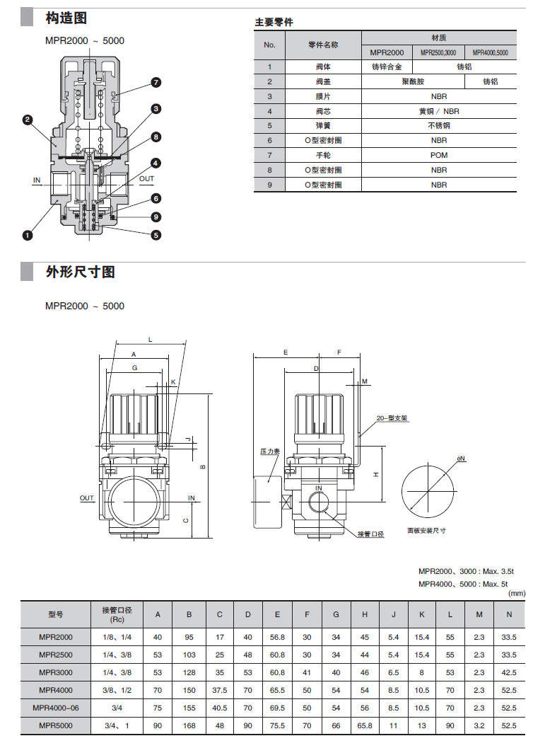 MPR2000-01,MPR2500-02,MPR3000-03,MPR4000-04,MPR5000-06,MPR2000-10,減壓閥