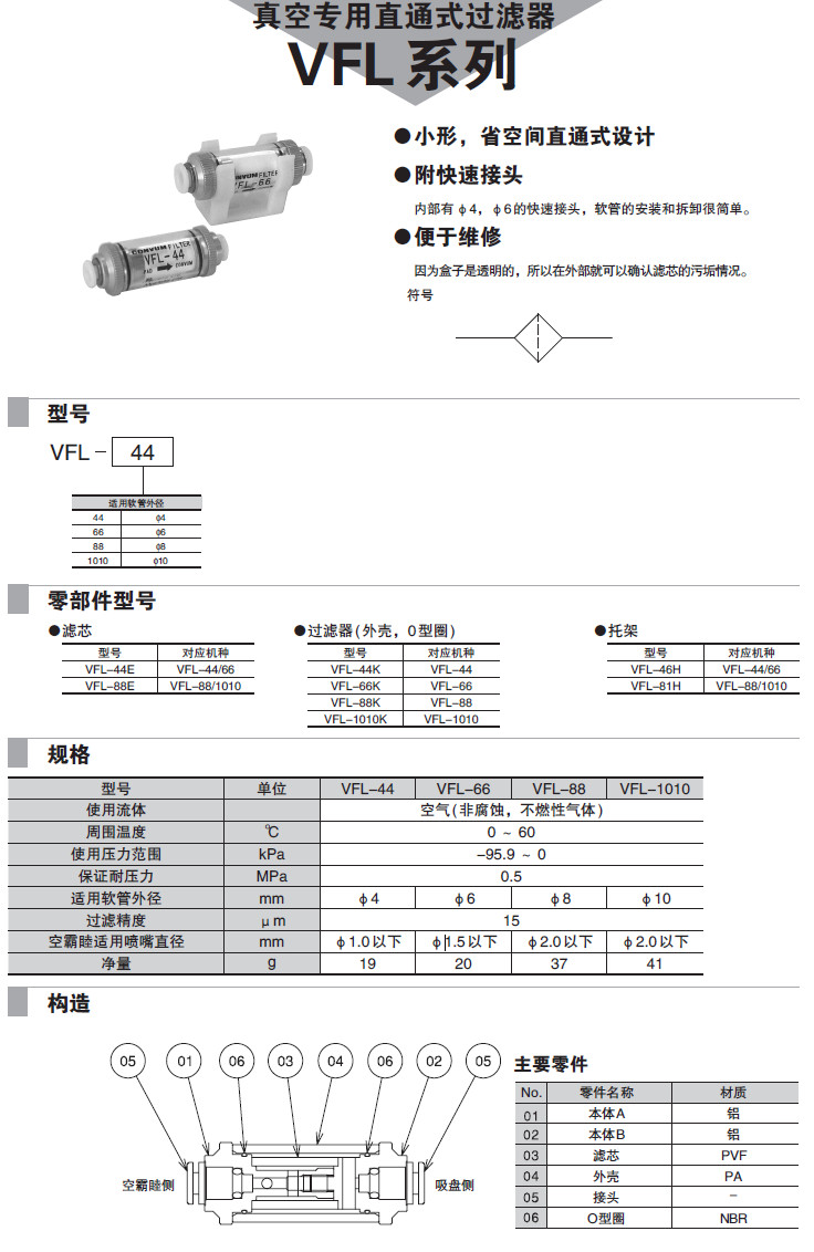 詳細(xì)信息 VFL-44K,VFL-66K,VFL-88K,VFL-1010K,過濾器
