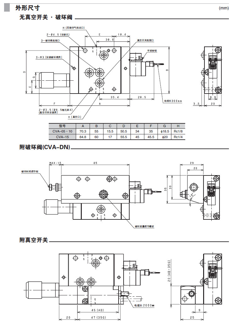 型號: CVA2-05-H,CVA2-05-L,CVA2-10-H,CVA2-10-L,CVA2-15-H,CVA2-15-Q,