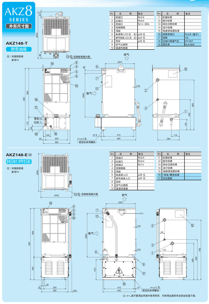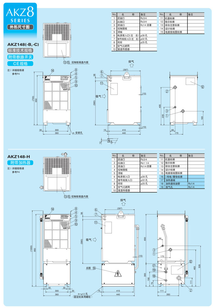 詳細(xì)信息 AKZ148,AKZ328,AKZ438,AKZ148-B,AKZ328-B,AKZ438-B,AKZ148-C,DAIKIN變頻油冷卻機