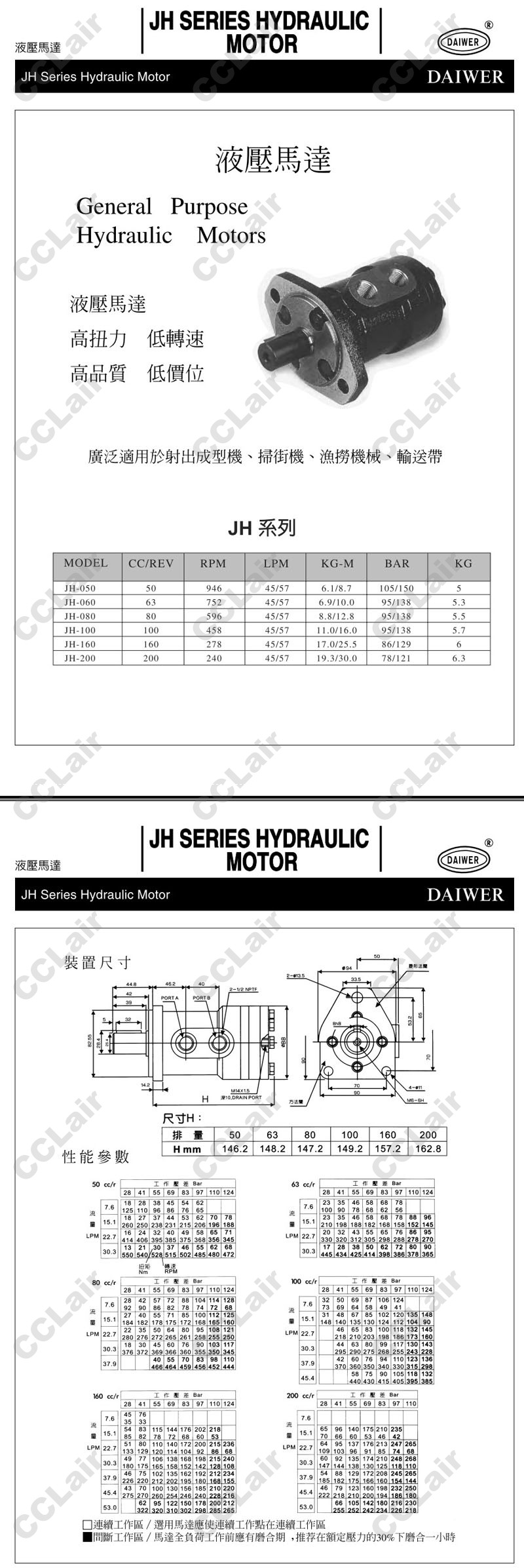 JH-050,JH-060,JH-080,JH-100,JH-160,JH-200,DAIWER液壓馬達